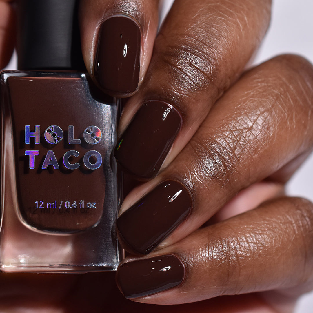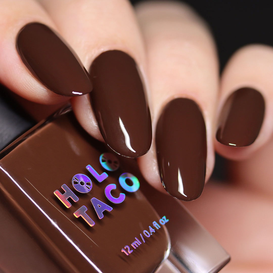 Rich chocolate brown, an absolute stunner. Paired with Butter Me Up and Lowkey Blushing for a cute Neopolitan ice-cream vibe