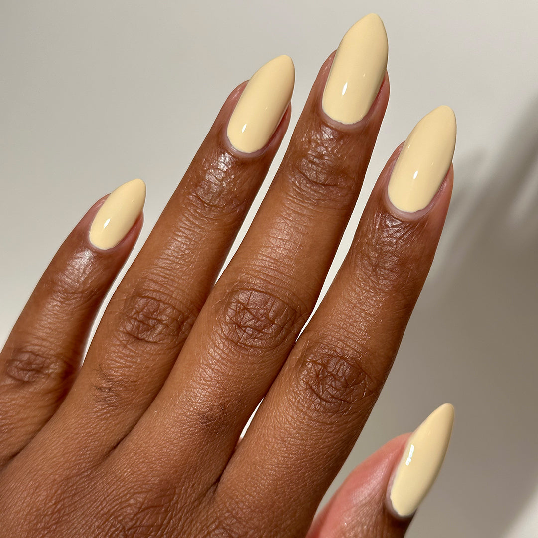 Very cute white chocolate / soft butter shade. The perfect kind of yellow for your nails ☺️