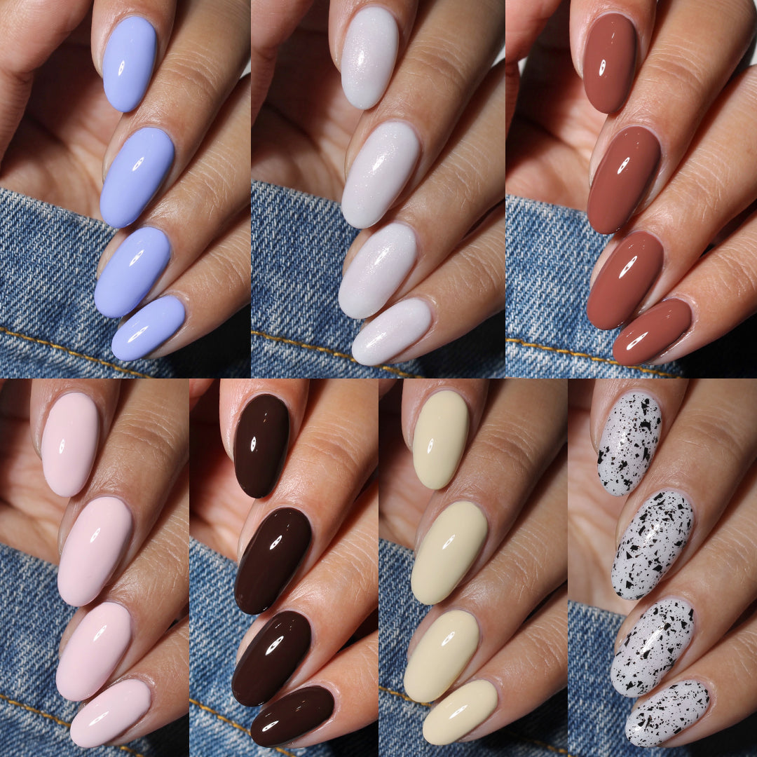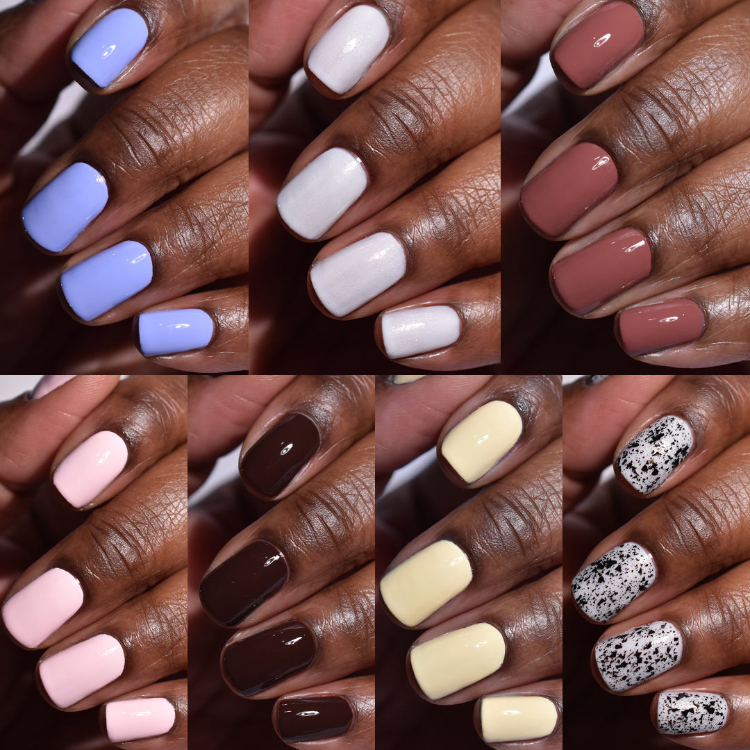 Bundle includes: Black Flake Taco, Milky White Shimmer, Peri-Social, Sweet Tooth, Butter Me Up, Ginger Snatched, and Brownie Points.