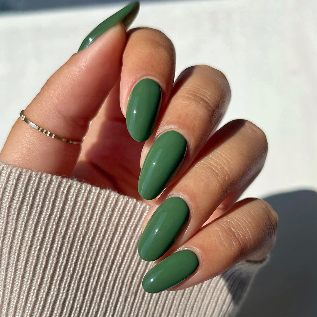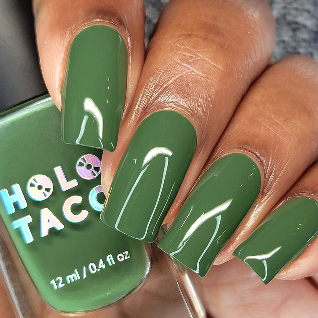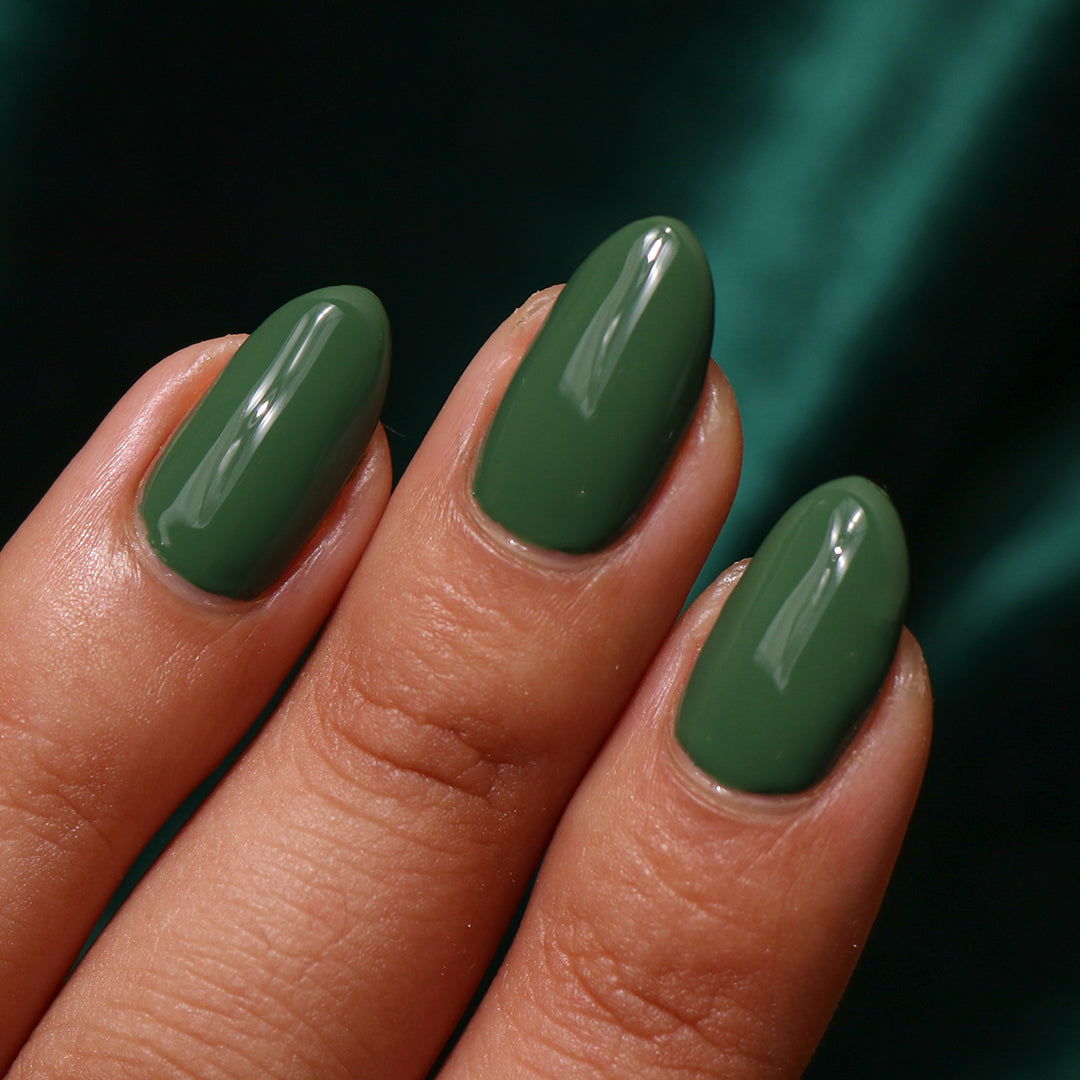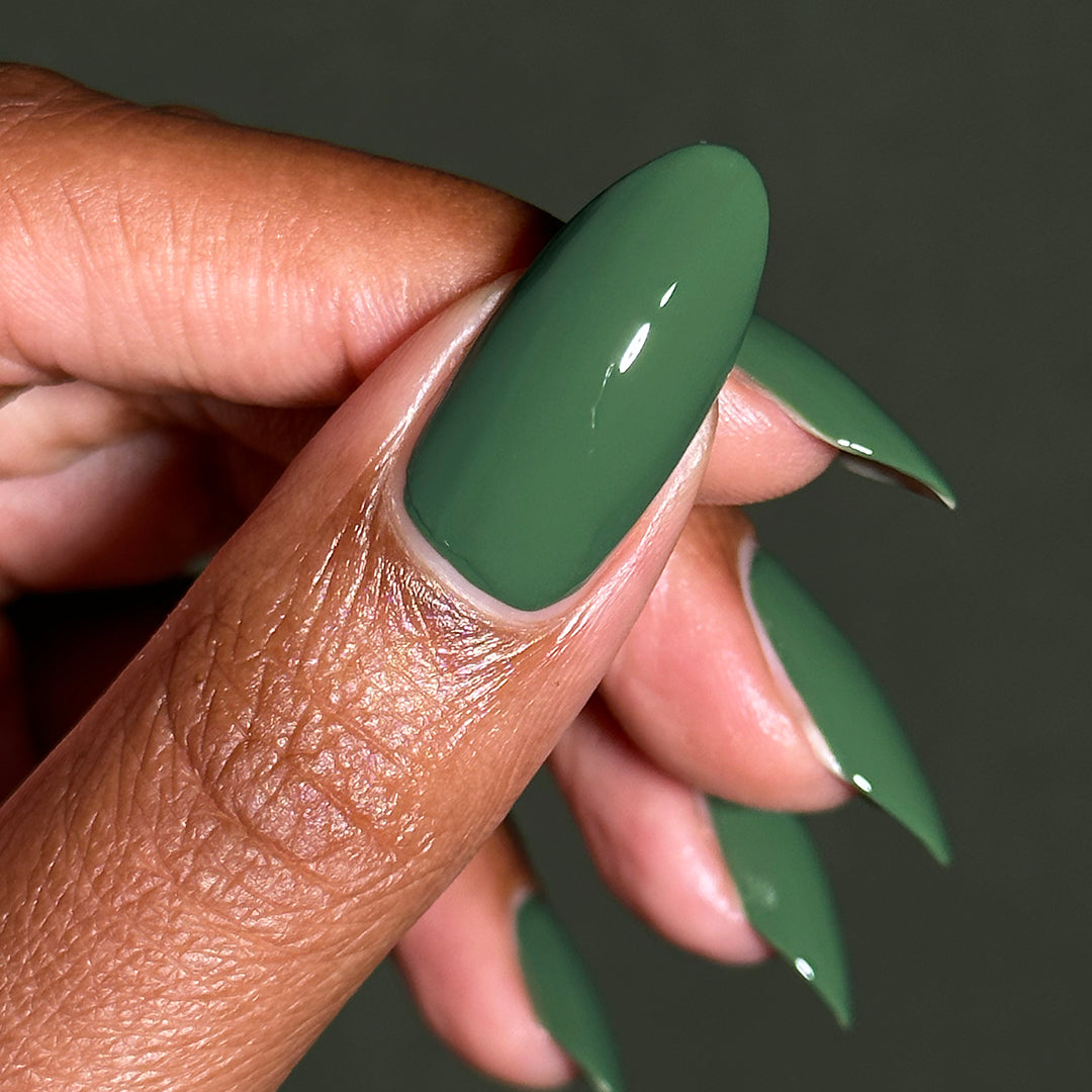Color is spot on with the photos. Love this color green so so much. Feels mossy and earthy. Looking at it on my nails made me feel happy and calm.