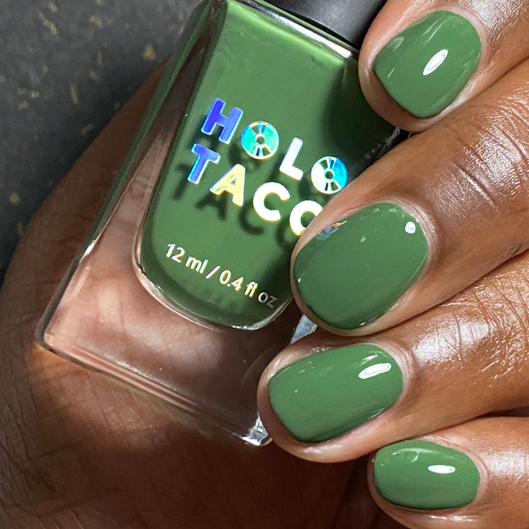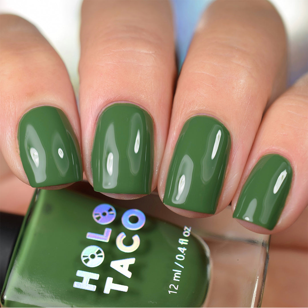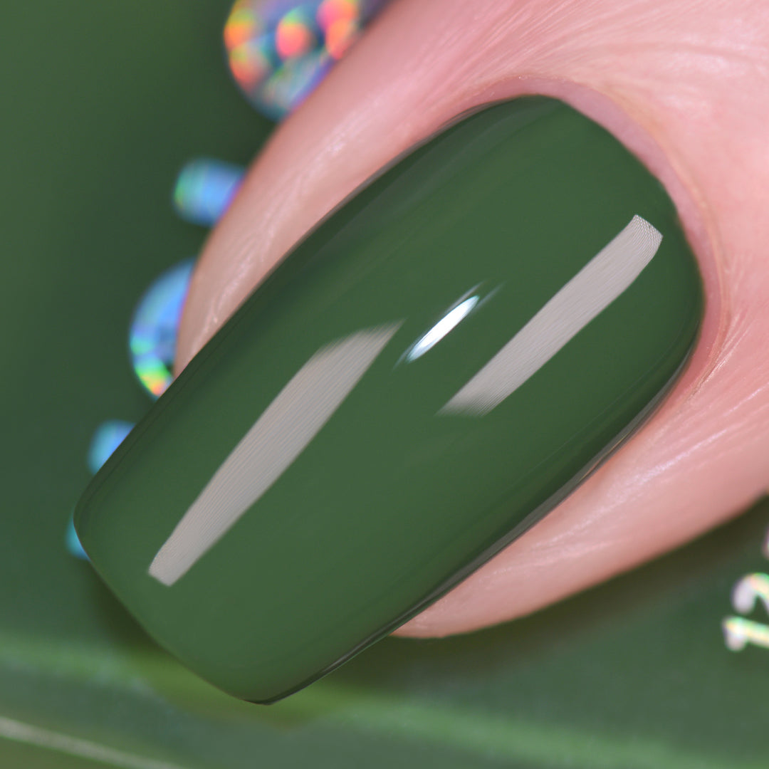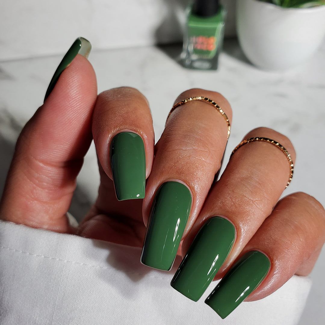 Color is spot on with the photos. Love this color green so so much. Feels mossy and earthy. Looking at it on my nails made me feel happy and calm.
