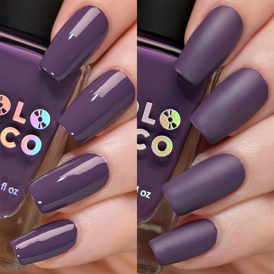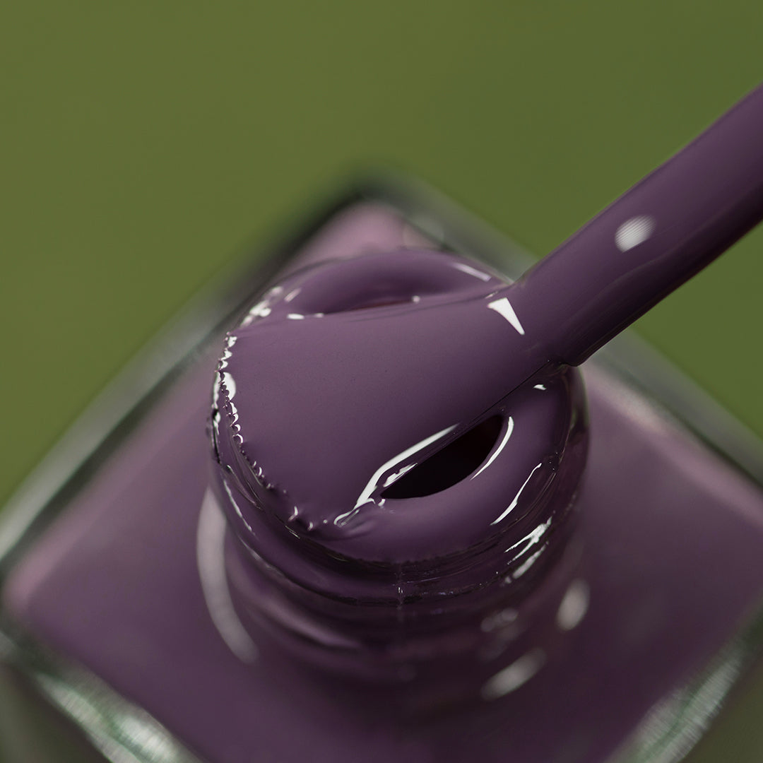 - Aubergine-eggplant purple polish with a crème formula
