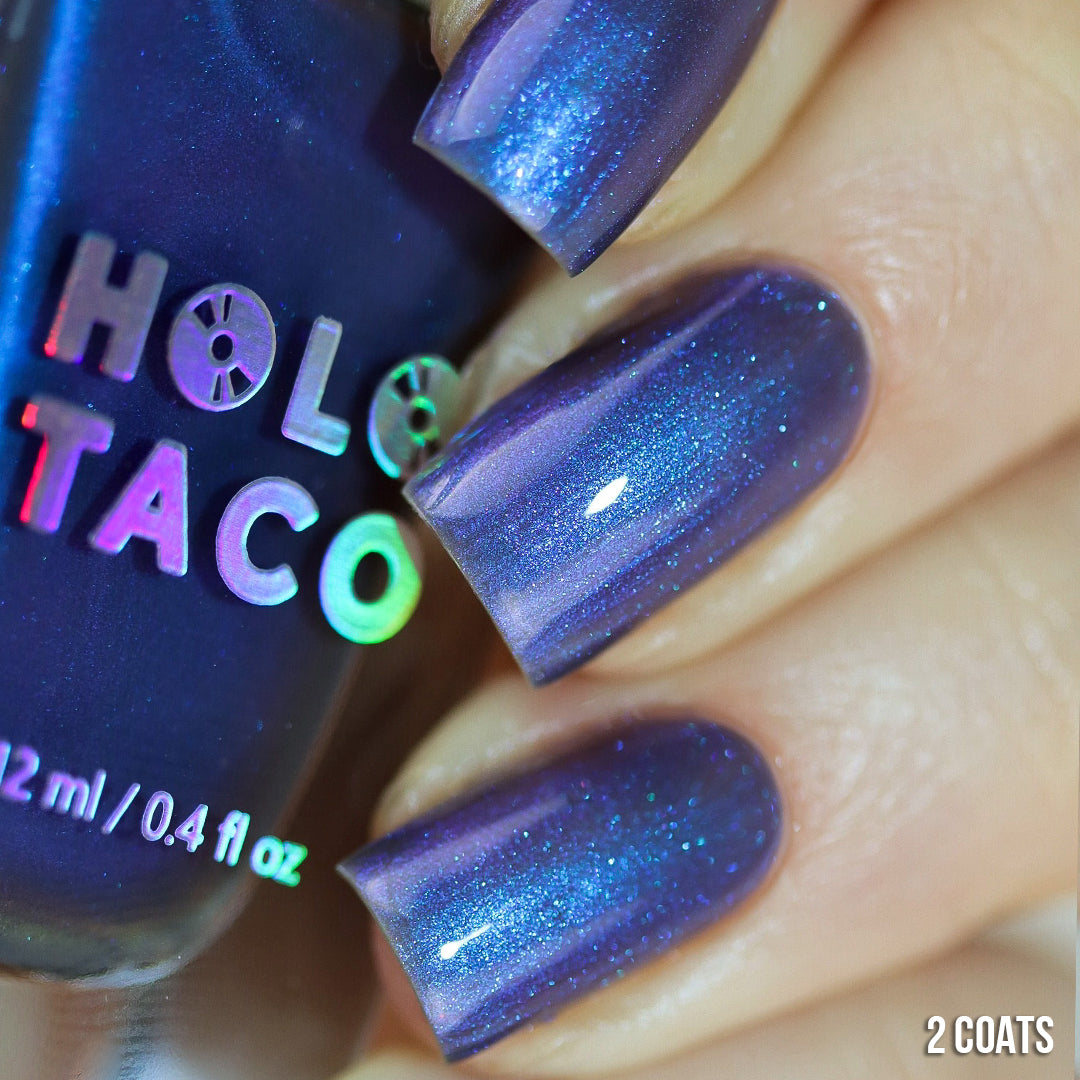 - Note: Shimmer nail polish shows best under direct sunlight, halogen bulbs, or just your phone camera flash! Swatch photos as pictured have one coat of Glossy Taco for optimal smoothness and shine.