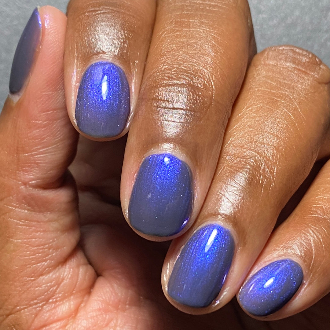 For the name "Shadow Lake", its very bright. Not necessarily a bad thing, but something to mention. This formula is very thin/watery. It made layering easy without adding too much polish to the nail and prevented clumping when I applied it. However, it took 3 layers to reach full opacity. Even then, if there was light coming through it would shine through the nail. This was also with some rather thick layers, oopsie adding too much polish, and it STILL shined through. Applying it, the polsih didn't spread evenly. I had some spots that had polish 'beading' (mostly on the sides and tip of the nail). The microshimmer application makes this REALLY streaky. Personally, I don't want a polish where it'll highlight EXACTLY where you double-backed. This polish required more time for me than others due to the thin formula and streaky shimmer. I ended up removing and reapplying half my nails due to the shimmer streaks making it look terrible. Otherwise this color is beautiful. A true, vibrant blue. In light, it does shift slightly to purple shades but the blue is always prominent. The grey base doesn't make it too washed out, and overall I genuinely like the shade.
