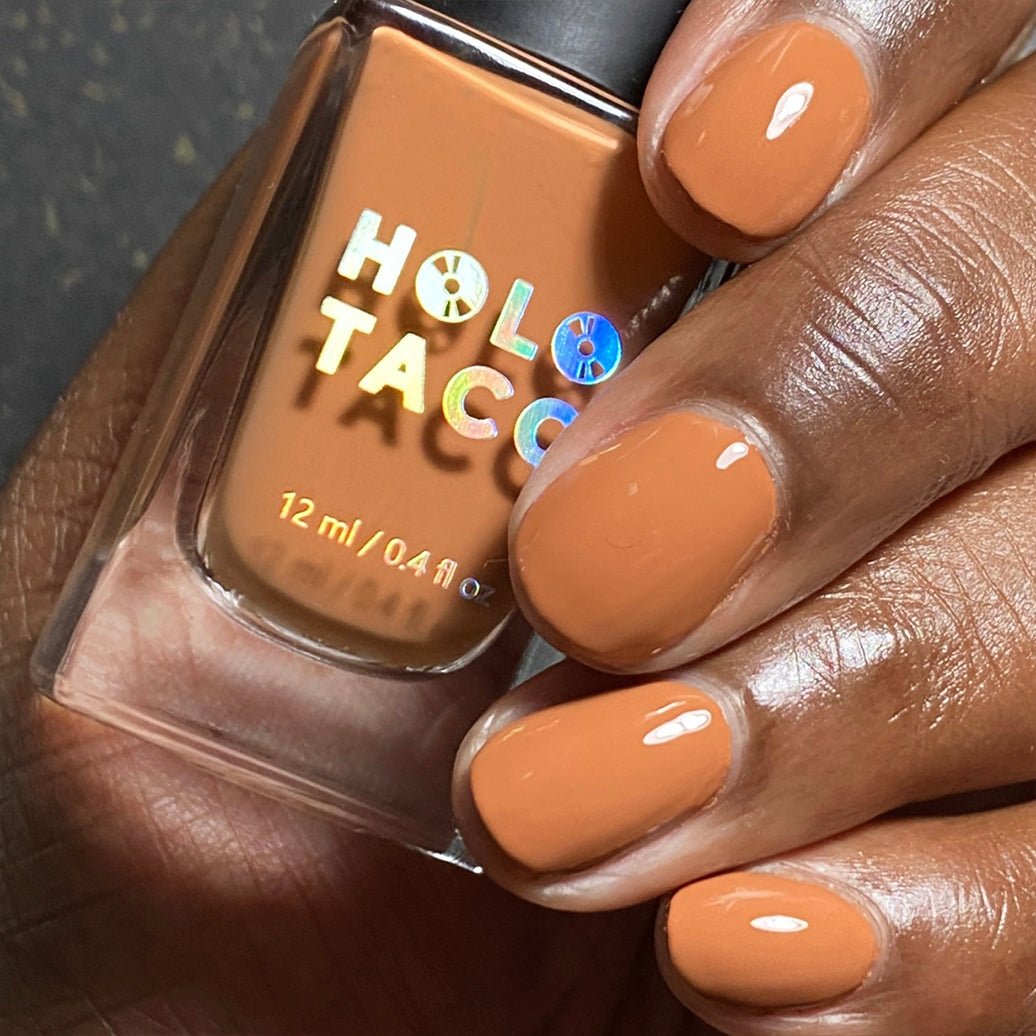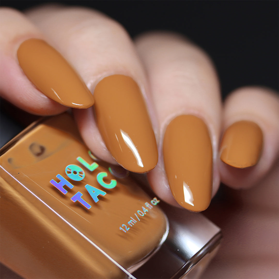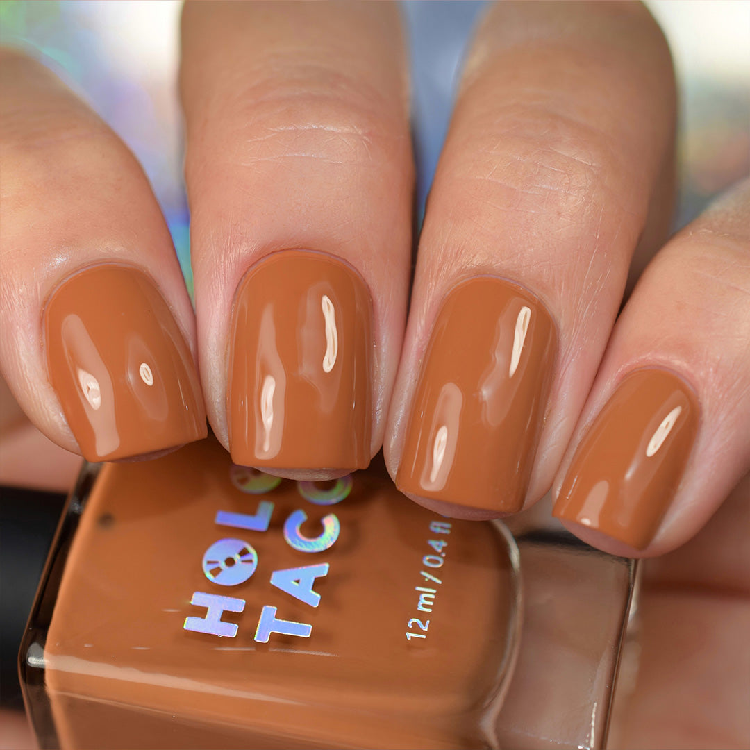 - Note: Super-pigmented shades like this one may cause staining depending on the porousness of the nail and the use of a protective base coat. Swatch photos as pictured have one coat of Glossy Taco for optimal smoothness and shine.