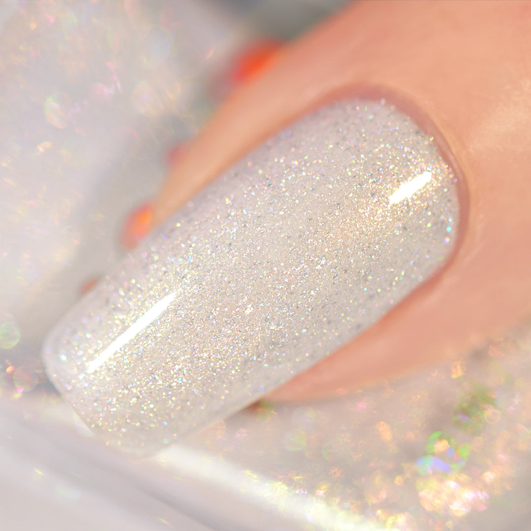 This Sugar Rush is ready for an encore. With crushed up fine holographic flakes mixed into a sugary white base, this shade will put some pep in your step. Topped up with a bonus burst of yellow-orange shimmer for a fiery finish you can almost taste. You’ll never want this show to end.