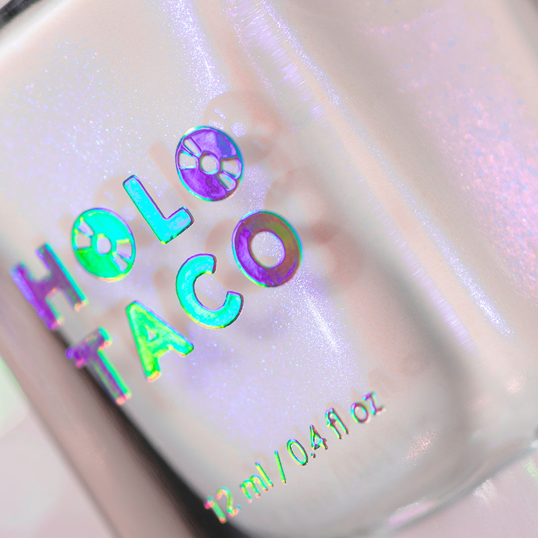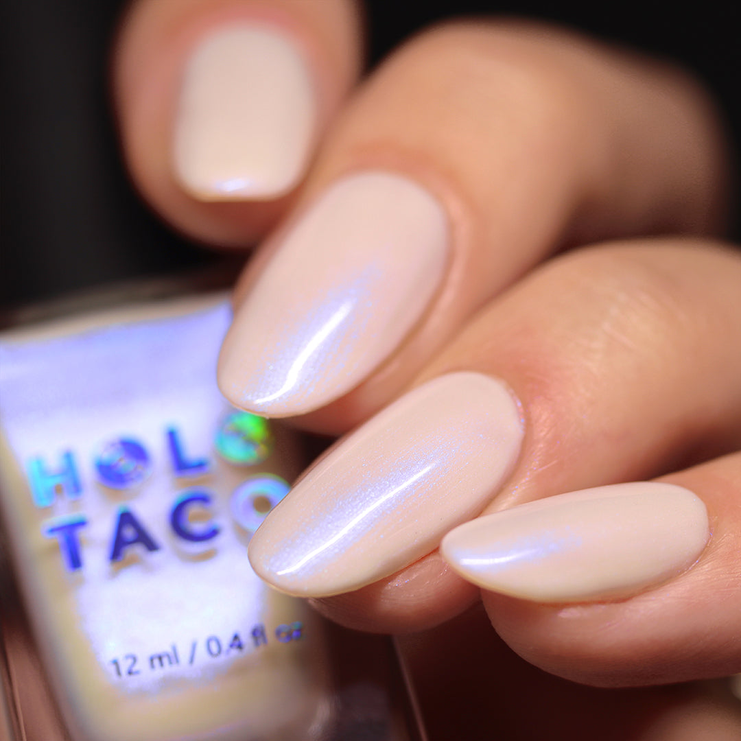- Note: Shimmer nail polish shows best under direct sunlight, halogen bulbs, or just your phone camera flash! Swatch photos as pictured have one coat of Glossy Taco for optimal smoothness and shine.