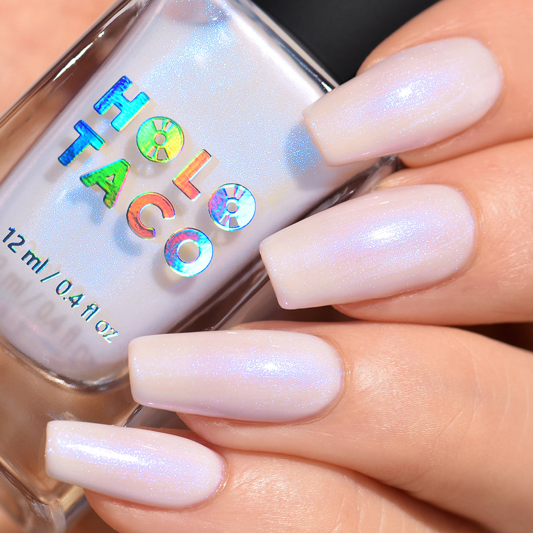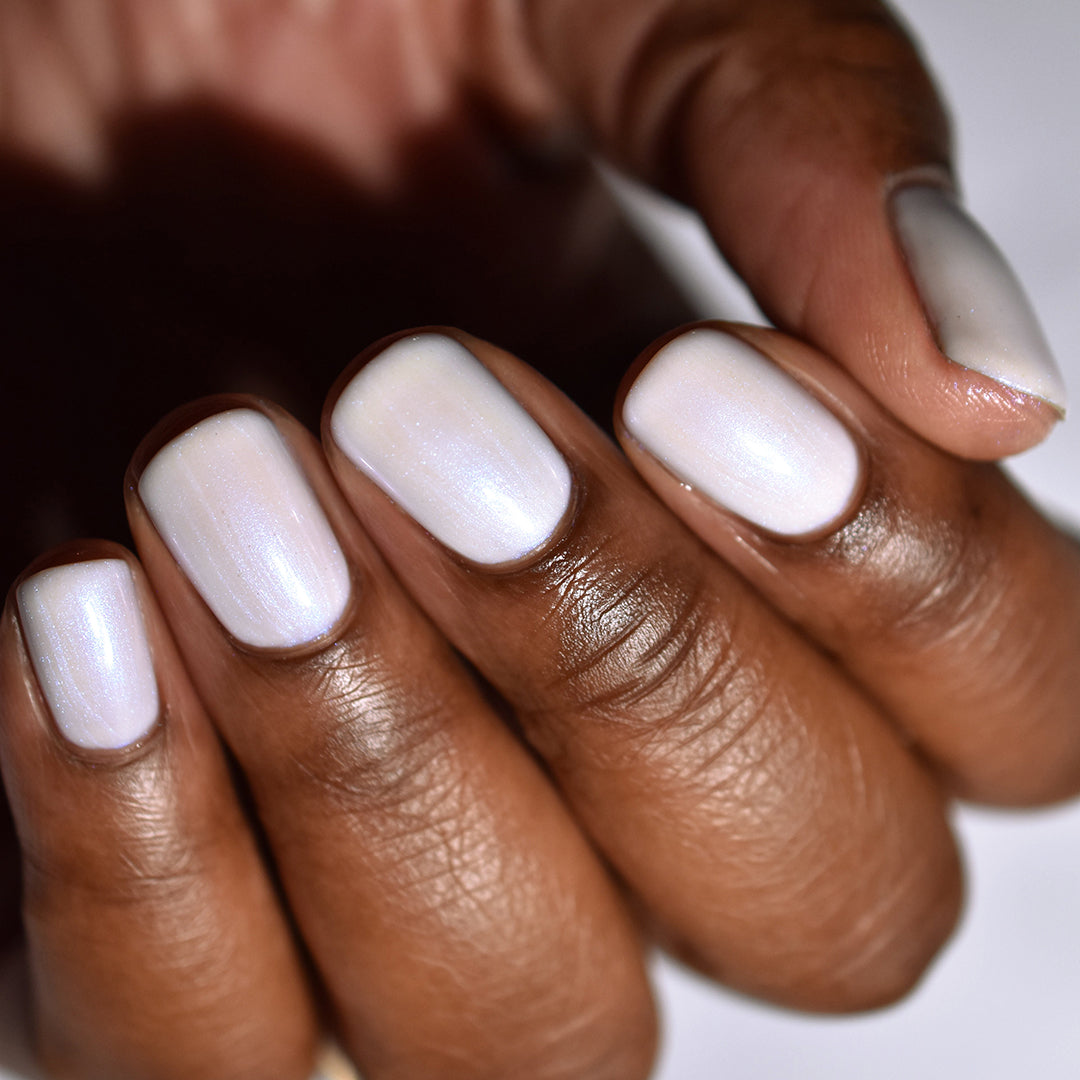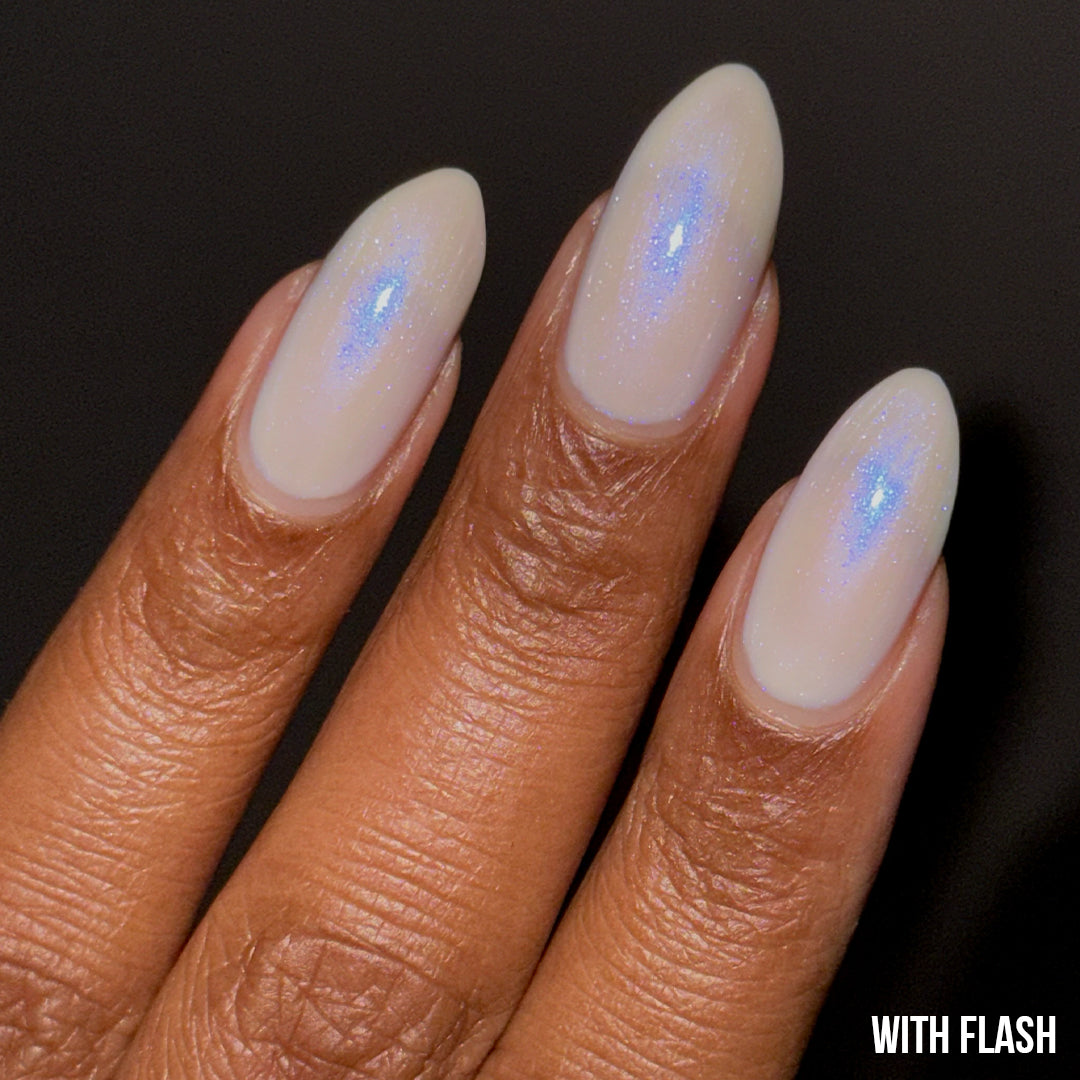 Hear that? Your Swan Song plays like a whisper on the water. Cloak your nails in moonlit mystique with a buildable sheer white jelly base and pop of glistening blue iridescent micro-shimmer. Don’t get lost in its lit-from-within sheen.