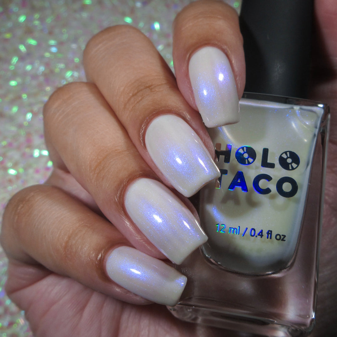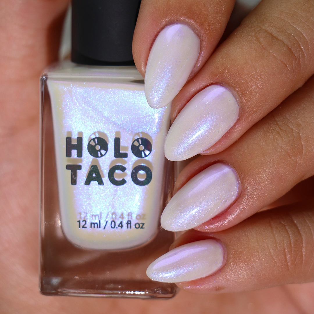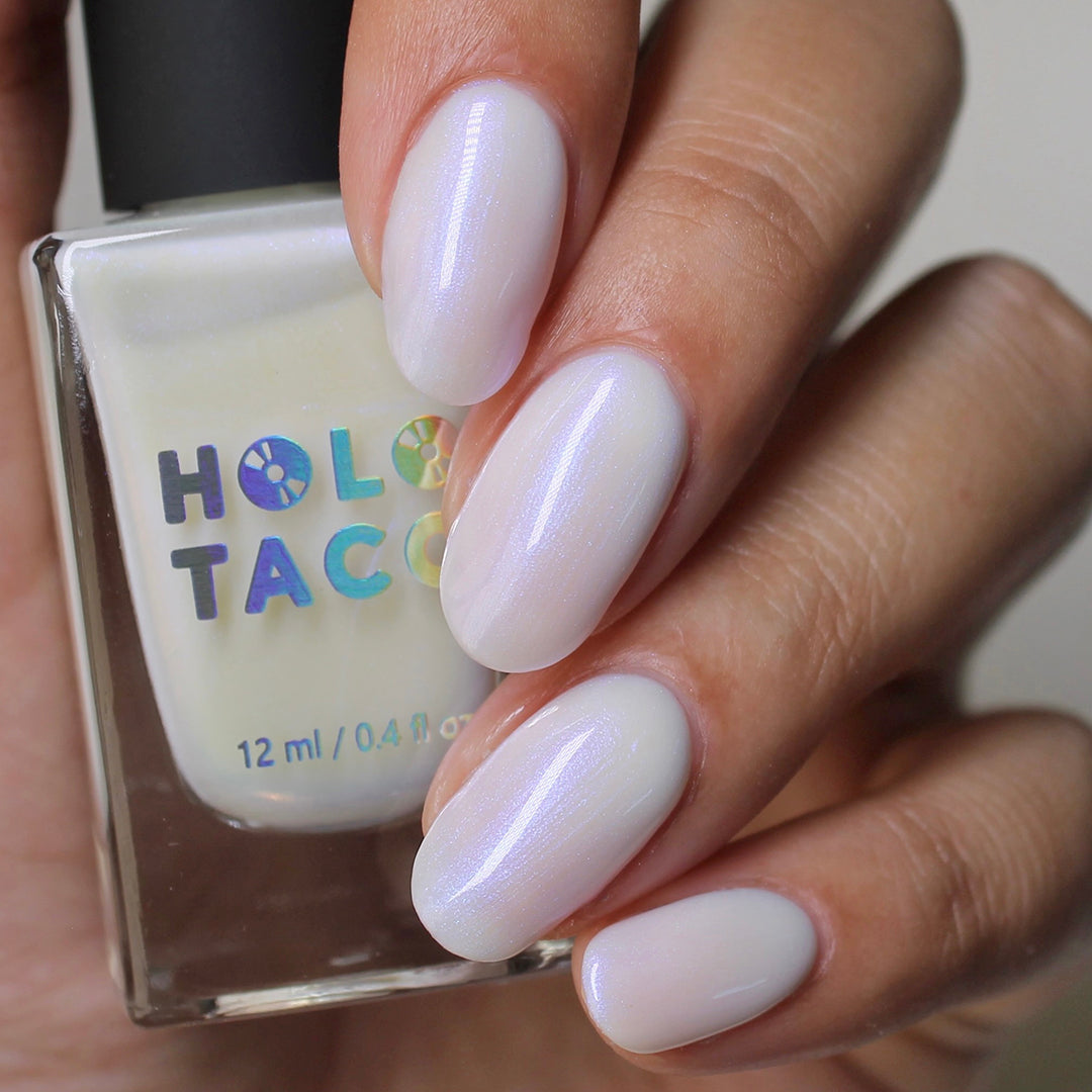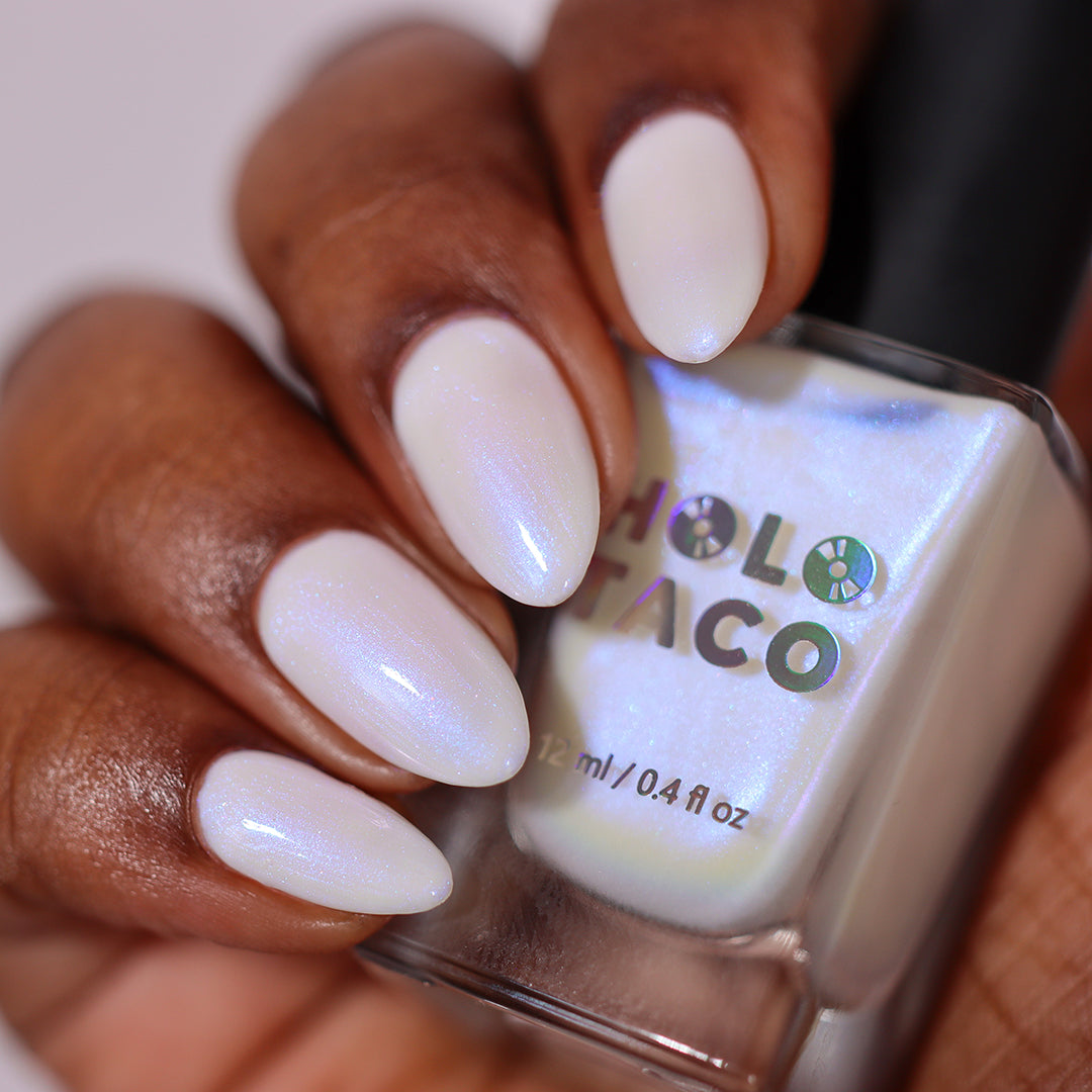 Hear that? Your Swan Song plays like a whisper on the water. Cloak your nails in moonlit mystique with a buildable sheer white jelly base and pop of glistening blue iridescent micro-shimmer. Don’t get lost in its lit-from-within sheen.
