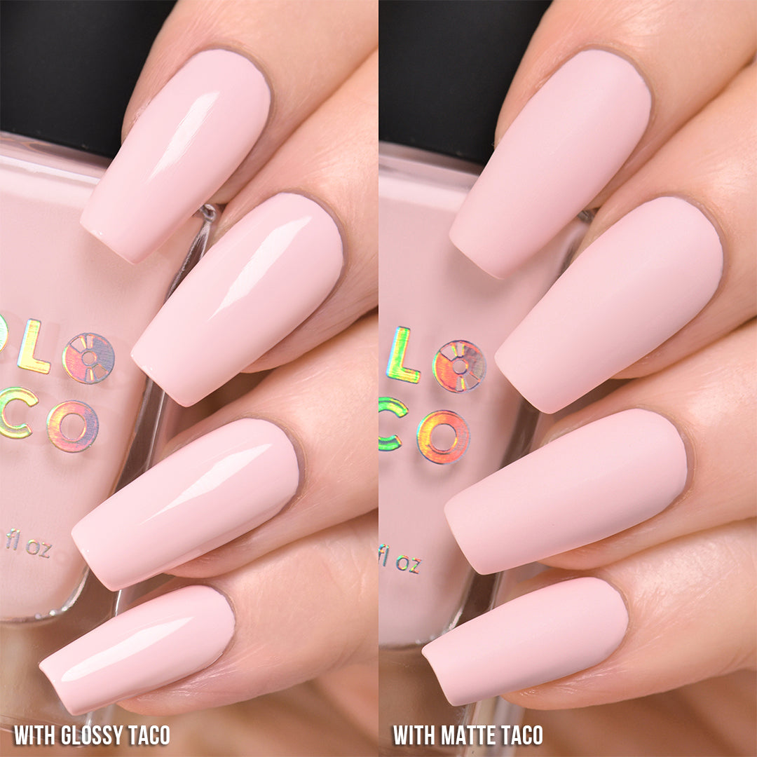 - Note: Super-pigmented shades may cause staining depending on the porousness of the nail and the use of a protective base coat. Swatch photos as pictured have one coat of Glossy Taco for optimal smoothness and shine.